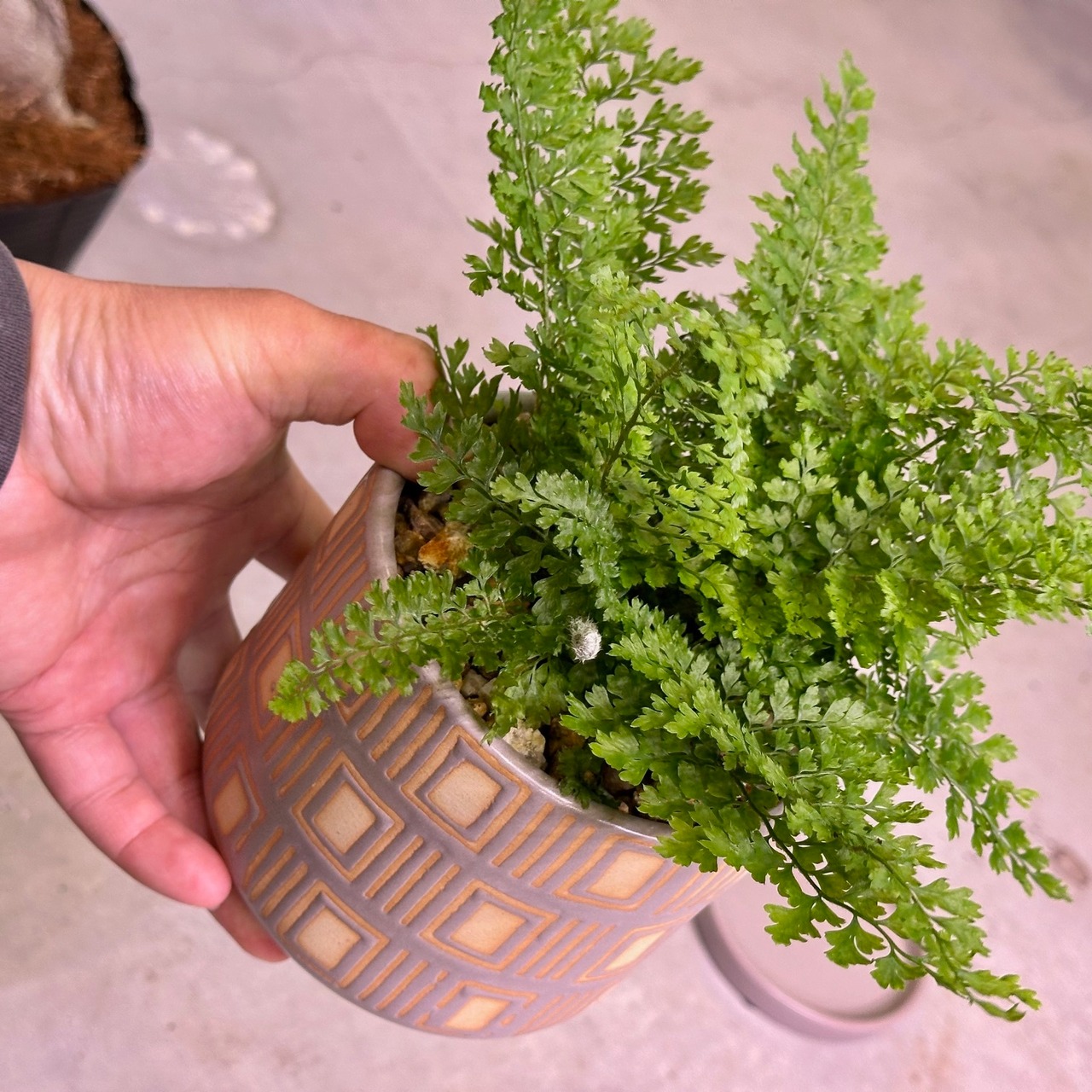 ポリスティクスの葉は細かい羽根状に分かれた形をしており、とても繊細で美しいのが特徴です。