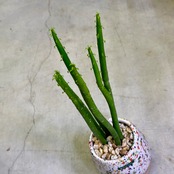葉は退化しており、枝だけで光合成をする種。枝はほぼまっすぐで細長く、パズルのように分岐しながら育つ性質を持っています。海外では『Pencil tree(鉛筆の木)の名でも親しまれ、モダン住宅の中庭やデザインホテルでも常連です。