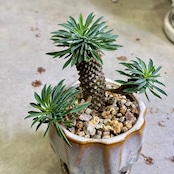 ソテツキリンは、ユーフォルビアの1種で、てっかという突然変異で幹が扇状に波打つように成長する姿が最大の特徴です。その独特なフォルムが『蘇鉄』のように見えるため『蘇鉄麒麟』と呼ばれています。