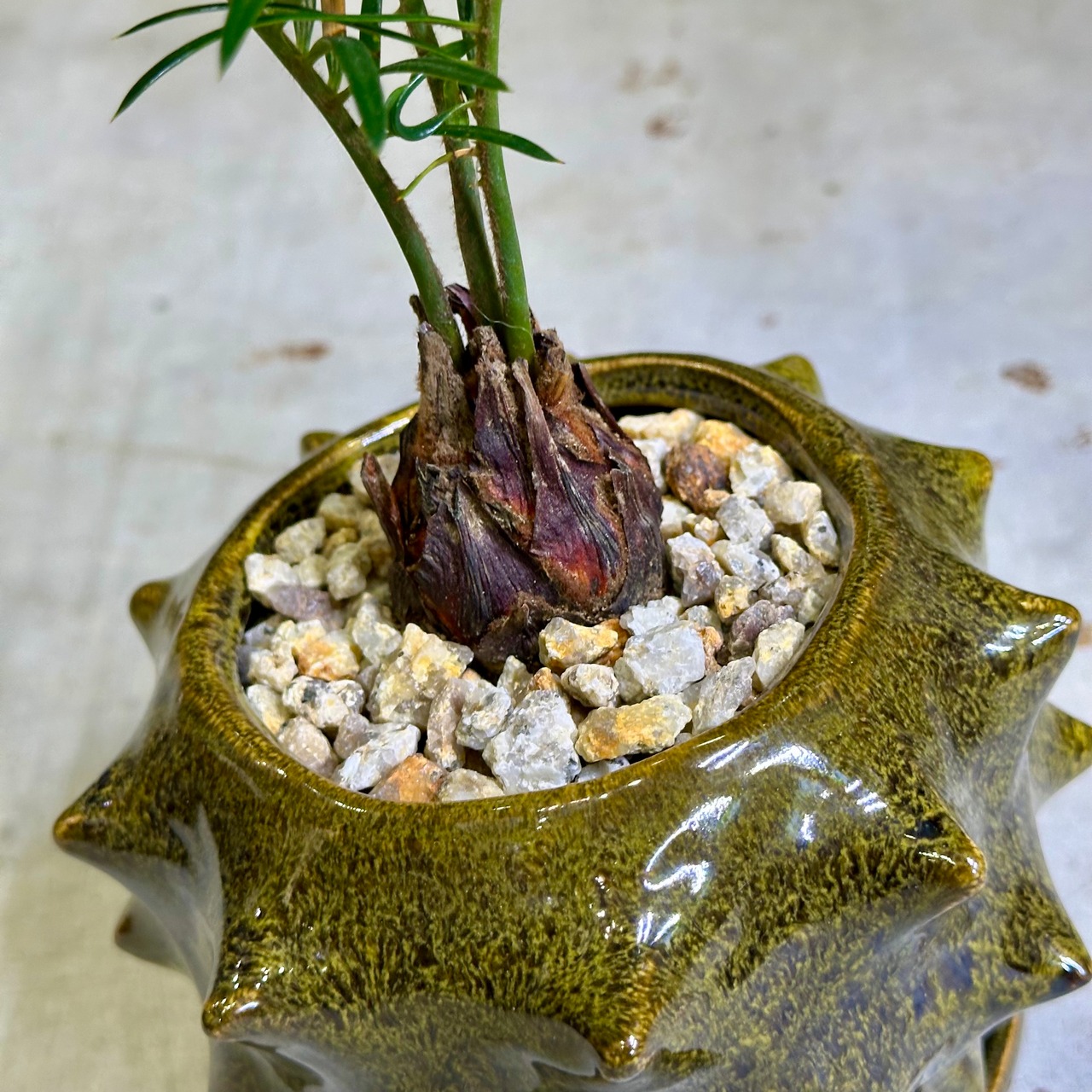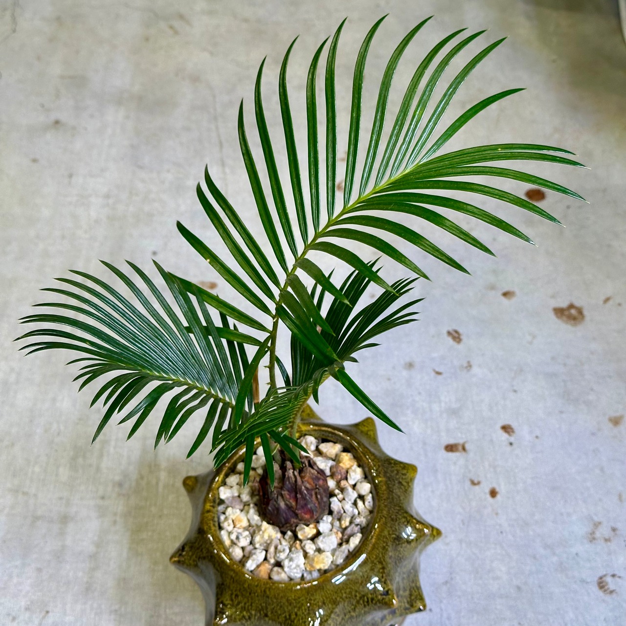 こちらはそんなソテツの卓上サイズです。脇から新芽が出てきているので、これからの成長に合わせてフォルムが良くなっていくことでしょう?