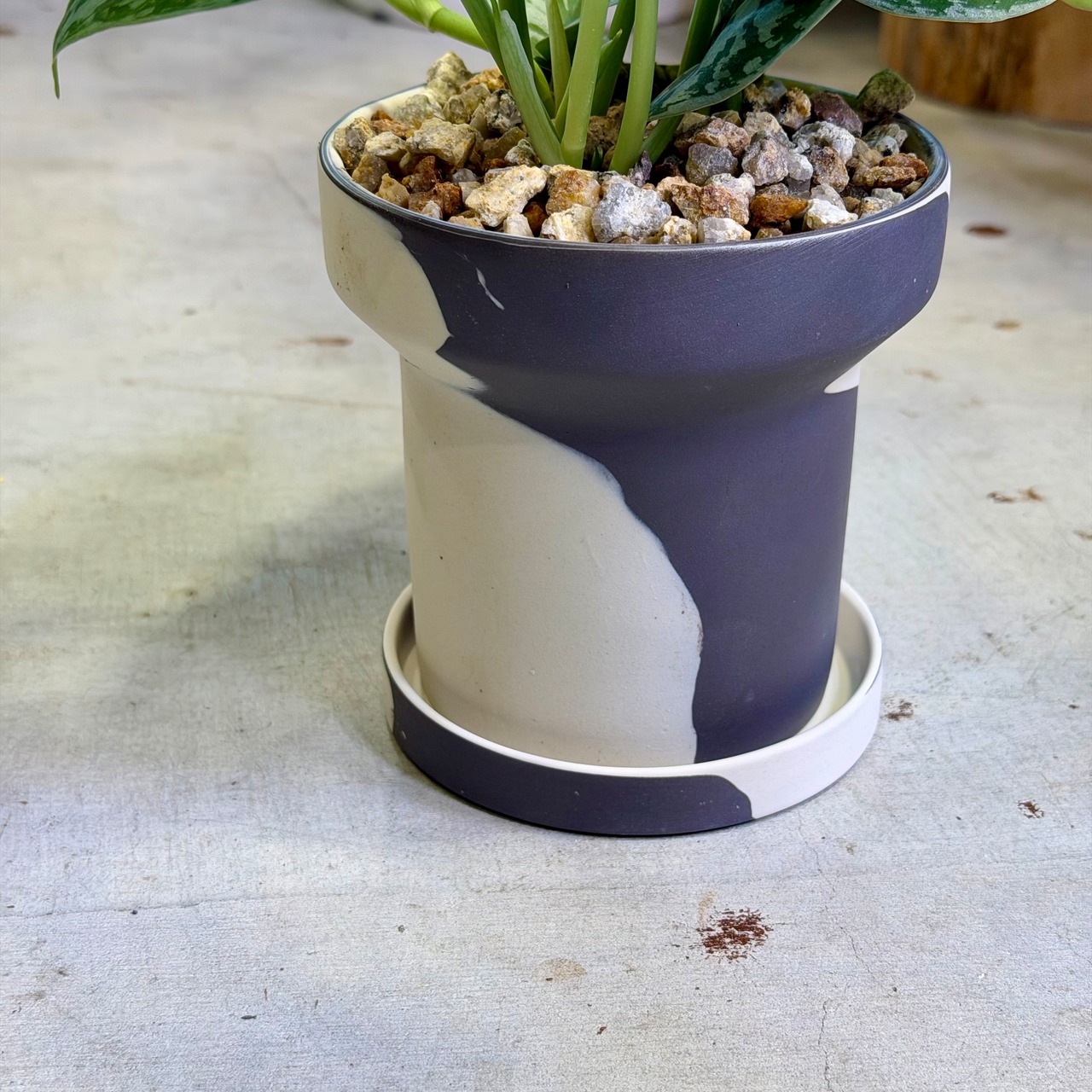 鉢も緩やかなカーブのかかった三角形型の鉢。シンプルですがどこか特徴的で飽きのこないデザインが非常におすすめの1鉢です。