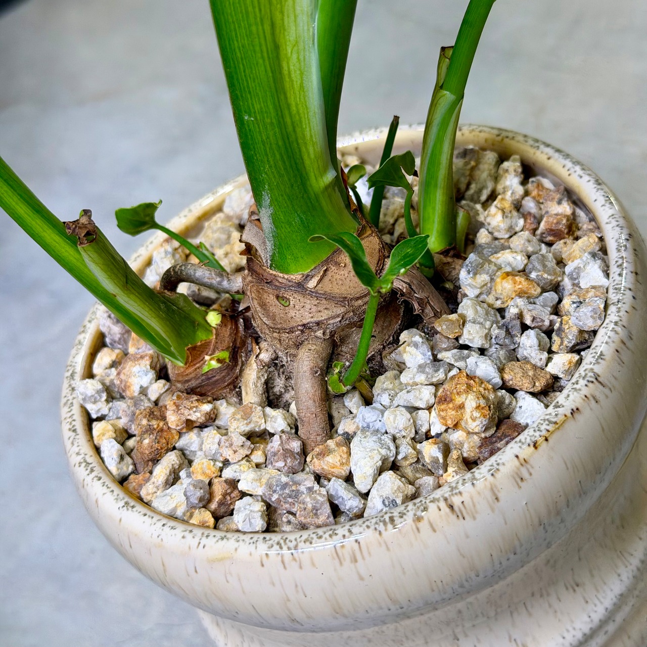 昔は「セローム」として流通していたけれど、現在は“フィロデンドロン・バイピンナティフィダム”が正式な分類です。僕は今でもセロームですがww成長すると幹立ちしてくる“木のような姿”になるのが特徴で、これが好きな人はめっちゃハマる品種です。空気を浄化する作用が強いとされ、オフィスグリーンとして欧米で長年人気です。南米原産で、野生では数メートルに育つ大型種です。