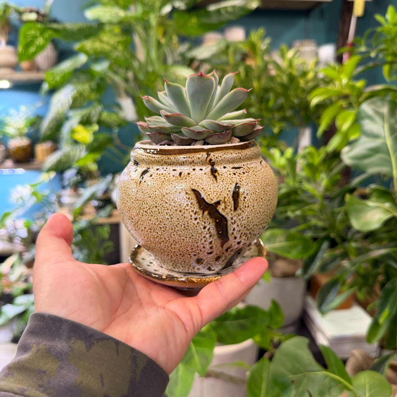 青緑の葉にほんのり入る赤縁が特徴で、ロゼットのまとまりも良く、インテリアにも合わせやすい品種です。