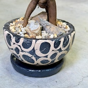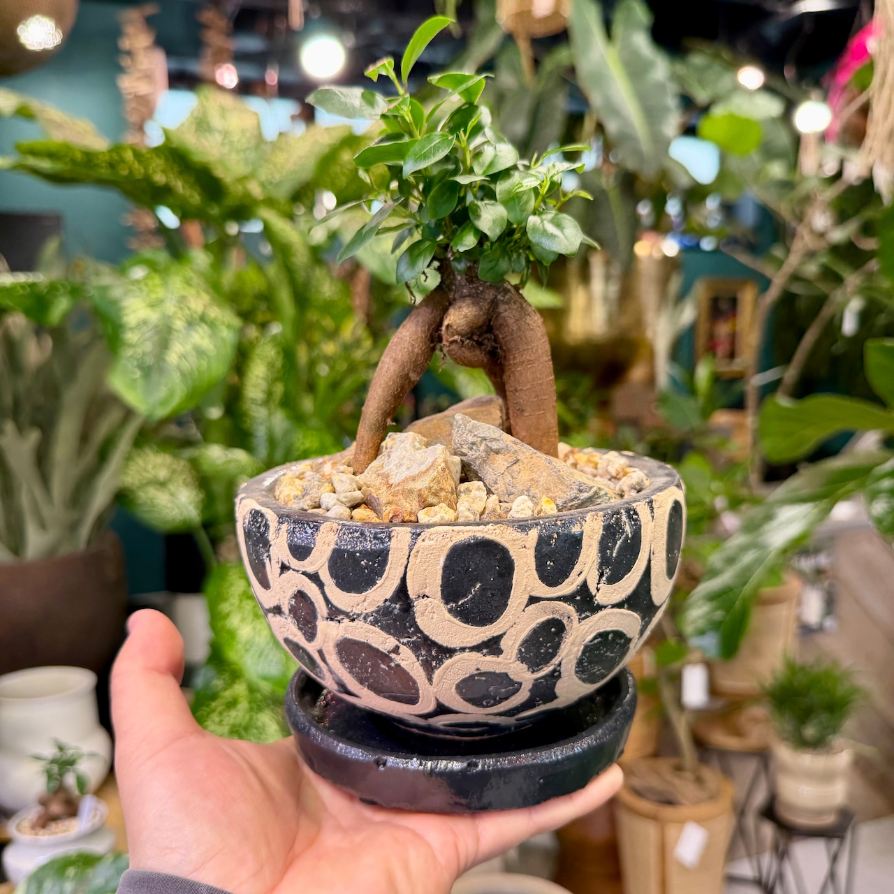 この鉢は、脚を一本外に出してみたタイプ。躍動感あふれるガジュマルをお探しの方にはオススメです。