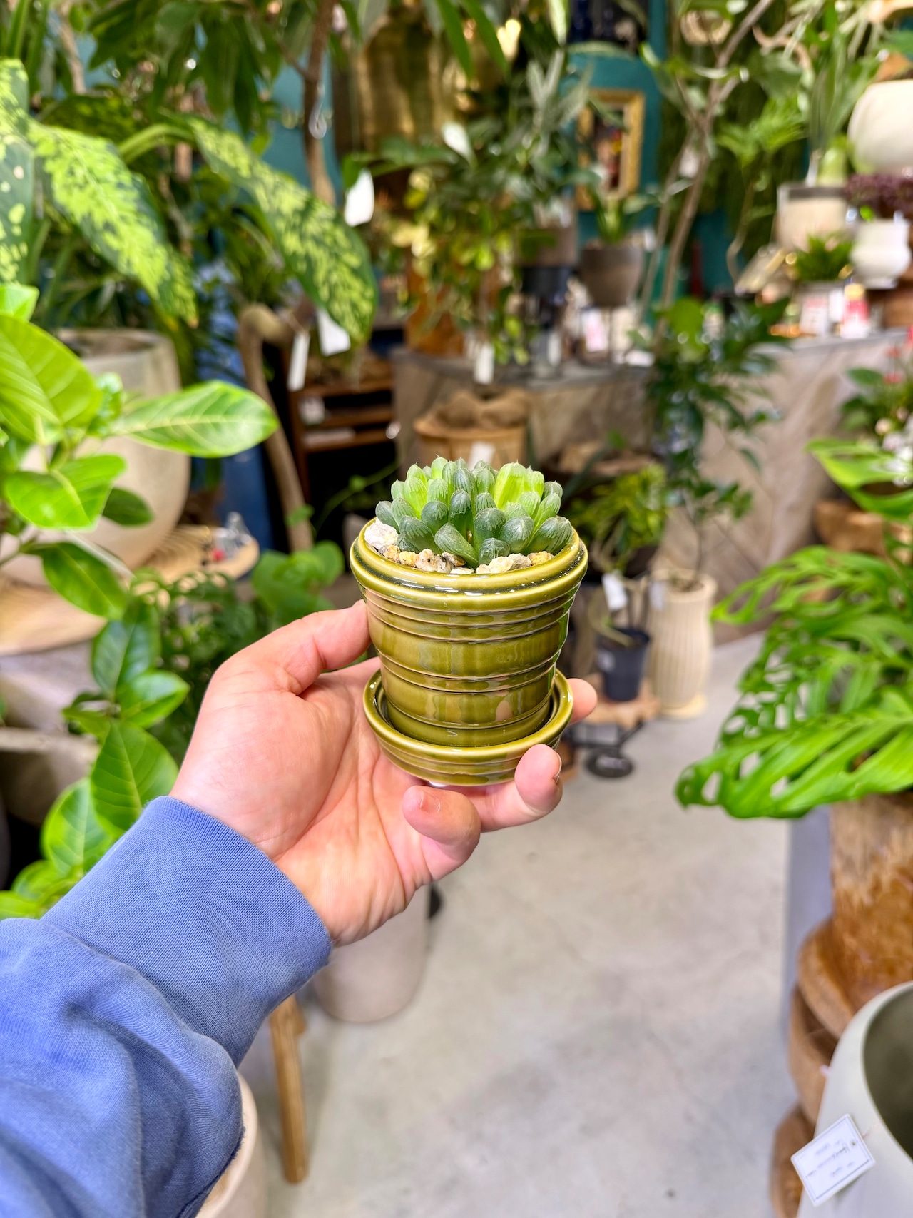 葉先の“ぷにぷに感”はオブツーサ特有で、光の角度でキラッと反射する姿はまさに宝石植物です。