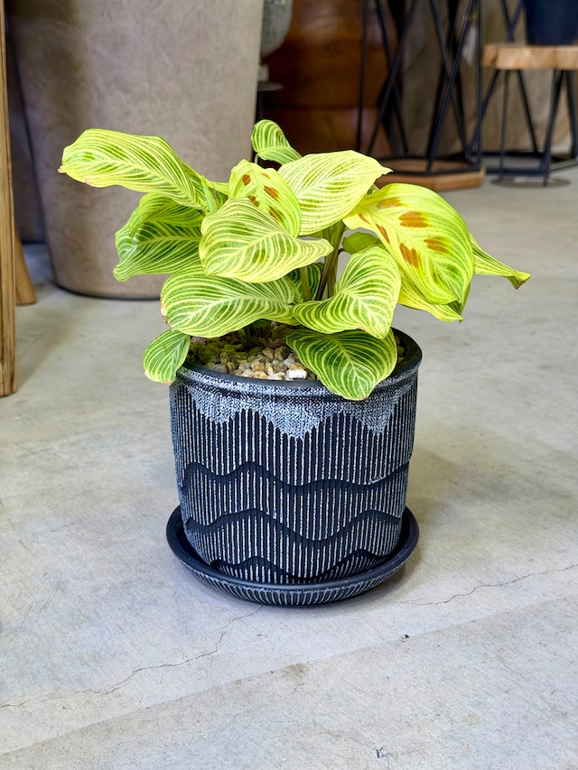 写真にも掲載しておりますが、鉢に特有の色むらが出ております。問題ない正常品ですが、神経質な方はご遠慮くださいませ。
