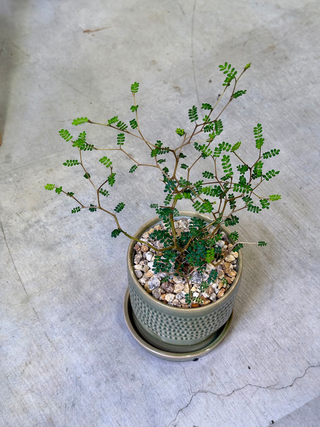 ソフォラ・リトルベイビーは、ニュージーランド原産のマメ科ソフォラ属の常緑低木です。繊細でジグザグに伸びる細い枝と、小さな丸い葉が特徴で、まるで盆栽のような姿が人気の観葉植物です。