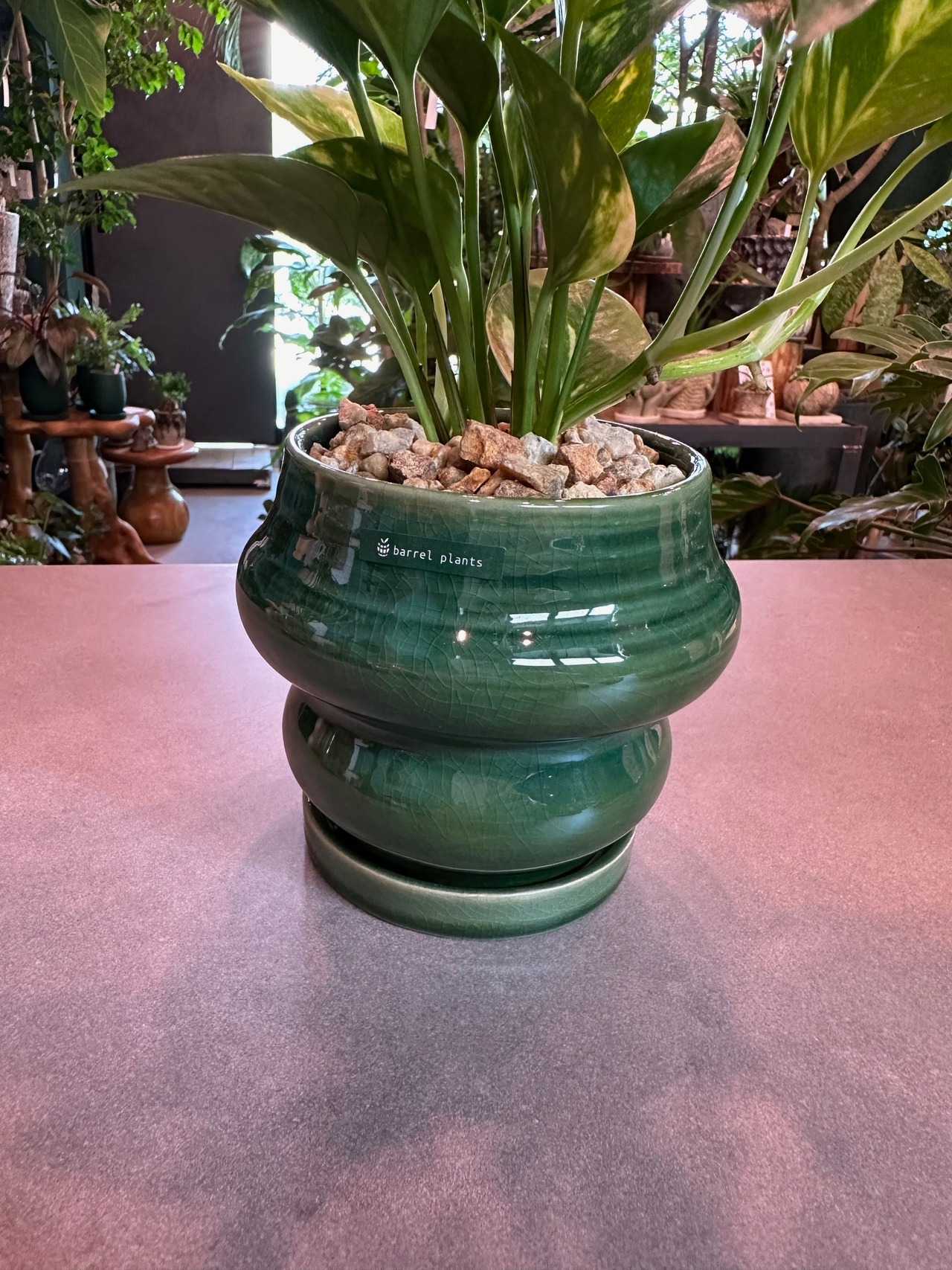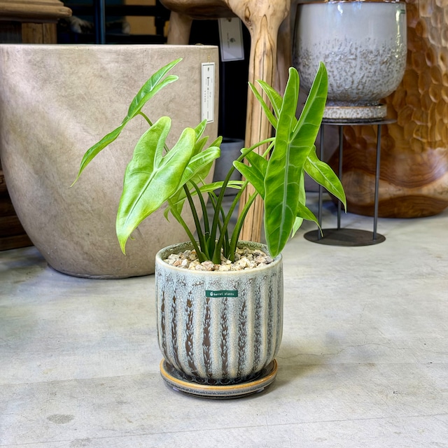 ポトスの中でも定番のオーレア。成長していくとツルのように伸びて垂れてくるので、キッチンの上などに置いてたらすインテリアとしてもおすすめ。育てやすい品種なので初心者の方の1鉢目にも人気の植物です。